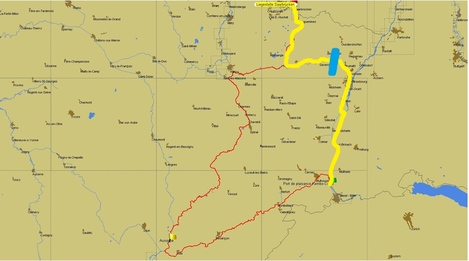 Den Rückweg hatten wir mit dem Bus geplant, welcher uns von Tourismusbüro auch entsprechend bestätigt worden ist. Auch die nochmalige Nachfrage von Astrid, ob dies wirklich der Richtige Bus am richtigen Ort sei, wurde nochmals bestätigt. Wir warten noch heute auf ihn…….. Auf dem wirklich mühsamen Rückweg mit stetiger Steigung und sommerlicher Hitze endlich einer der erwarteten Rückrufe. Wir verladen das Schiff am Dienstag in Lagarde und entladen in Lutzelbourg. Von da weg waren auch keine Berge für das Fahrrad mehr da 🙂 und die Ferien konnten endlich wieder weiter gehen.