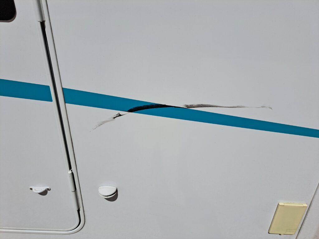 Dann weiter nach Bisceglie, einen kleinen Vorort von Bari. Wir wollten noch etwas zusammen geniessen, aber trotzdem schon in der Nähe des Flughafens übernachten. Auf der Hinfahrt hörten wir einen lauten „Bums“ und wir tippten auf eine Flasche, welche wohl umgefallen sein muss. Kurz darauf fuhr ein weisser Audi neben uns her und fuchtelte wild mit den Händen. Davon ausgehend, dass irgendetwas am Camper nicht in Ordnung ist, haben wir umgehend am Strassenrand angehalten. Er zeigte uns einen schwarzen Flecken am Camper und berichtete irgendwas auf Italienisch.