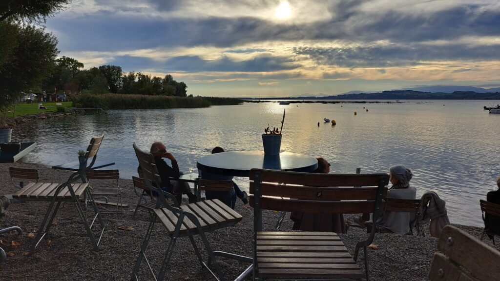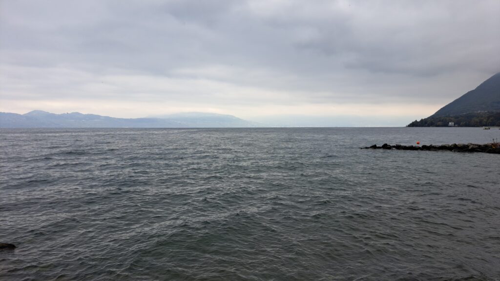 Weiter gings am Samstag nach Lugrin, ein kleines Dorf am südlichen Seeufer des Genfersees. Ein eher älteres Dörfchen mit 3 Campingplätzen mit erhöhter Aussicht über den See und den Schweizer Bergen. Leider konnten wir nur vermuten, wie toll die Aussicht bei Sonnenschein sein muss.