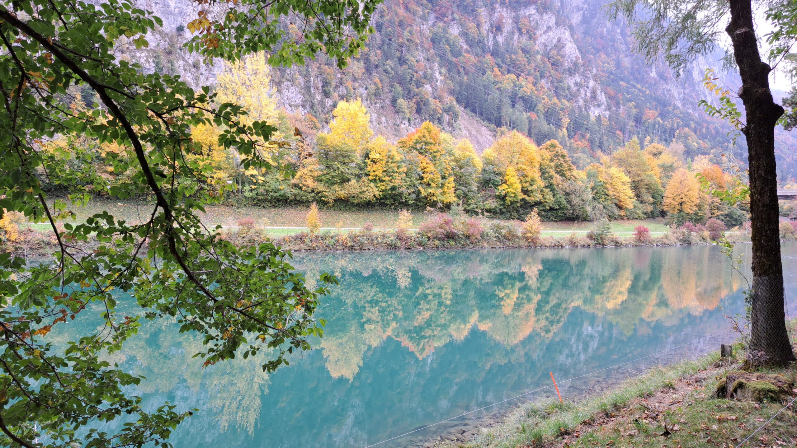 Nun hofften wir auch auf Sonne und machten uns auf den Weg nach Château-d’Oex. Heute Sonntag waren wohl noch sehr viele Leuten «nebelbedingt» zu Hause. So sind wir gut in die Höhe gefahren. Die Reben und angrenzenden Wälder ab Aigle leuchteten in ihren schönsten Farben bei strahlendem Sonnenschein und beinah künstlich blauem Himmel. Eine Traumfahrt endete auf dem grossen Campingplatz, auf welchem viele fest installierte Dauercamper liegen. Heute jedoch war er praktisch ausgestorben. Das Dorf hat uns sehr gut gefallen.