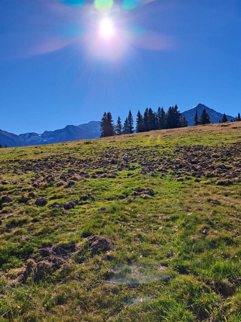 Wir waren sehr erstaunt, dass auf dieser Höhe (über 1’900 Meter) ganze Felder von Wildschweinen aufgebrochen sind.