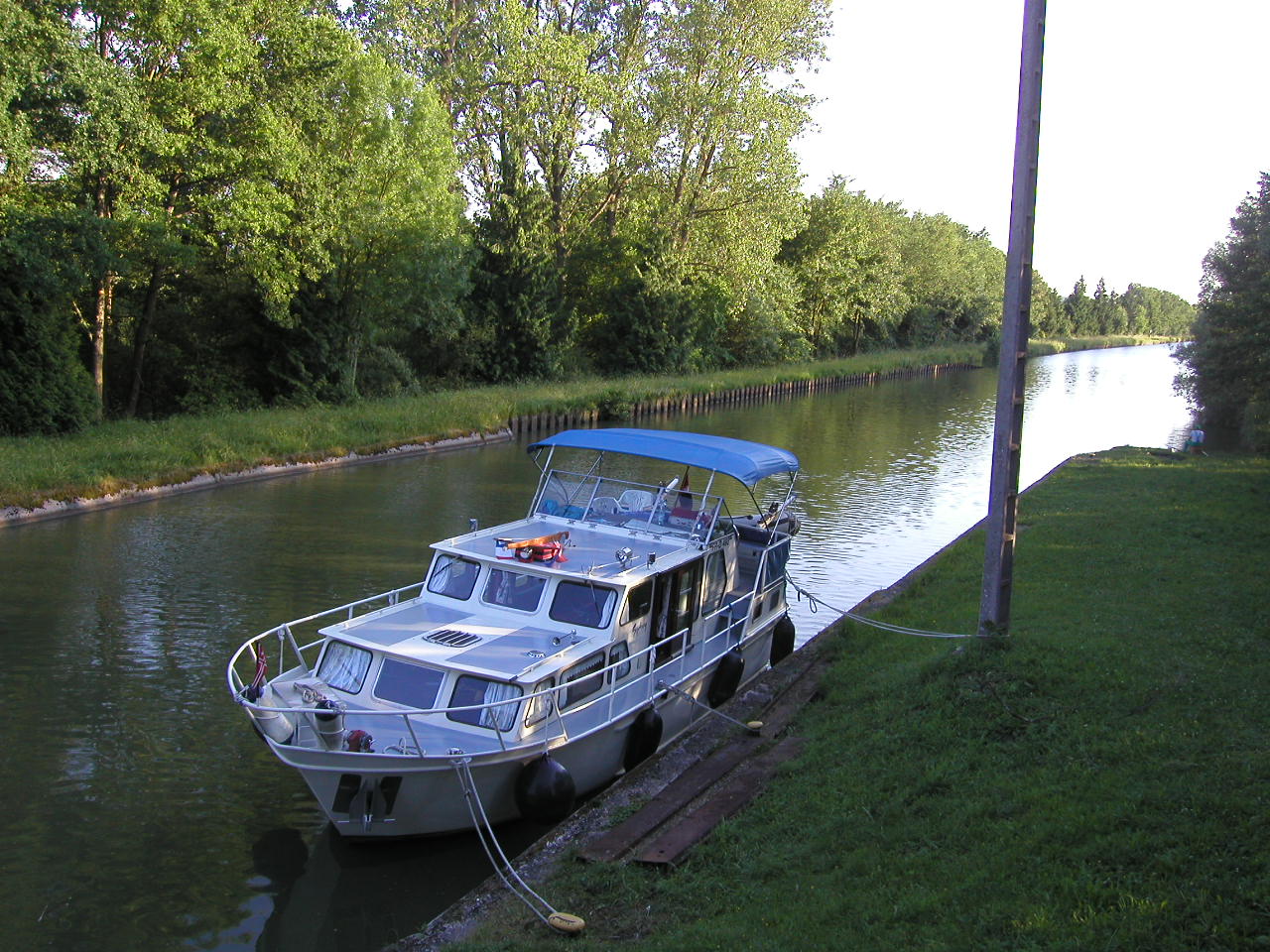 In Moussey angekommen sehen wir, dass es keine freien Plätze mehr im „Hafen“ hat und dieser auch nicht mit Strom und Wasser ausgerüstet ist. Wir beschliessen spontan weiter zufahren, bis die Schleusen nicht mehr laufen. Dies war wie befürchtet um 19.00 Uhr. Wir legen also im Walde an das Ufer an und geniessen einen Abend in wirklich unberührter Natur. Uebrigens hat Astrid heute ihre ersten Schleusen am Steuer der Sydney mit Bravur bestanden. Ich spielte in dieser Zeit, hoffentlich ebenso gut, den Matrosen.