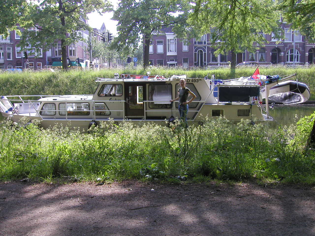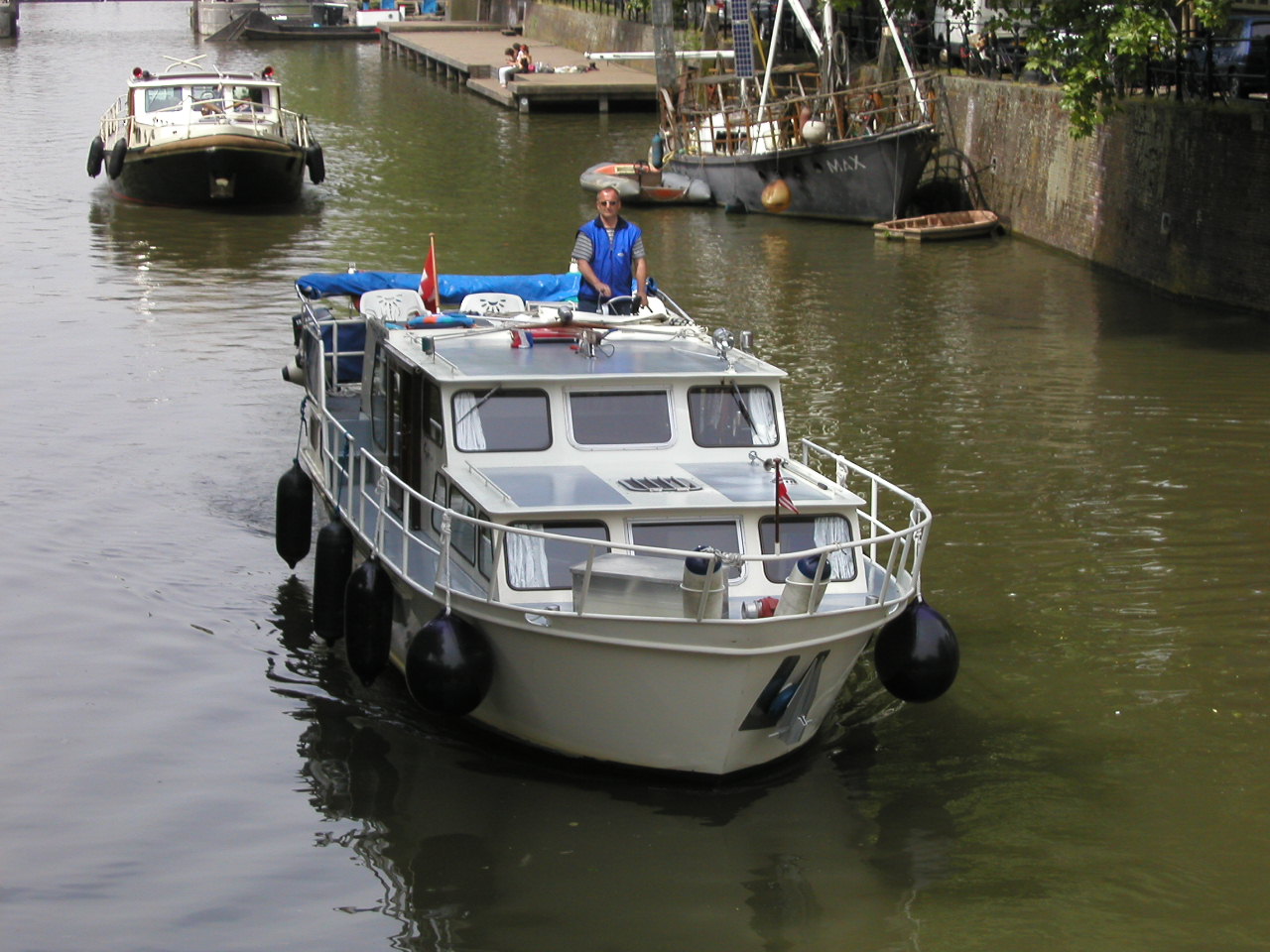 Kurz vor Utrecht geht rechts eine letzte Schleuse in den Amsterdam – Rijnkanaal Kanal. Unser „Vorfahrer“, welcher uns seit der letzten Brücke begleitet, baut alle Masten und Satellitenantennen ab. Astrid ruft erfreut: „Wenn der durch Utrecht kann, können wir es auch.“ Beruhigt, dass die Höhe ausreichend ist, fahren wir weiter. Ein Blick zu unserem Freund – er wählt die Route durch den erwähnten Kanal und verlässt die Vecht bei der Schleuse. Irgendwie ein mulmiges Gefühl – haben wir uns doch so auf diese Sicherheit verlassen. Egal wir gehen weiter. Bei der nächsten festen Brücke mit einer Durchfahrtshöhe von 4 Metern steht Astrid mit dem Meter auf dem Dach und misst die verbleibende Höhe. Das reicht ja längstens – beruhigt fahren wir in die Stadt Utrecht. Eine absolute Herausforderung für jeden „Böötler“. Heisst es doch auf die engen Kurven, Brücken, Bäume und nicht zuletzt auf die unzähligen Strassenkaffees aufzupassen, welche an dem Kanal liegen.